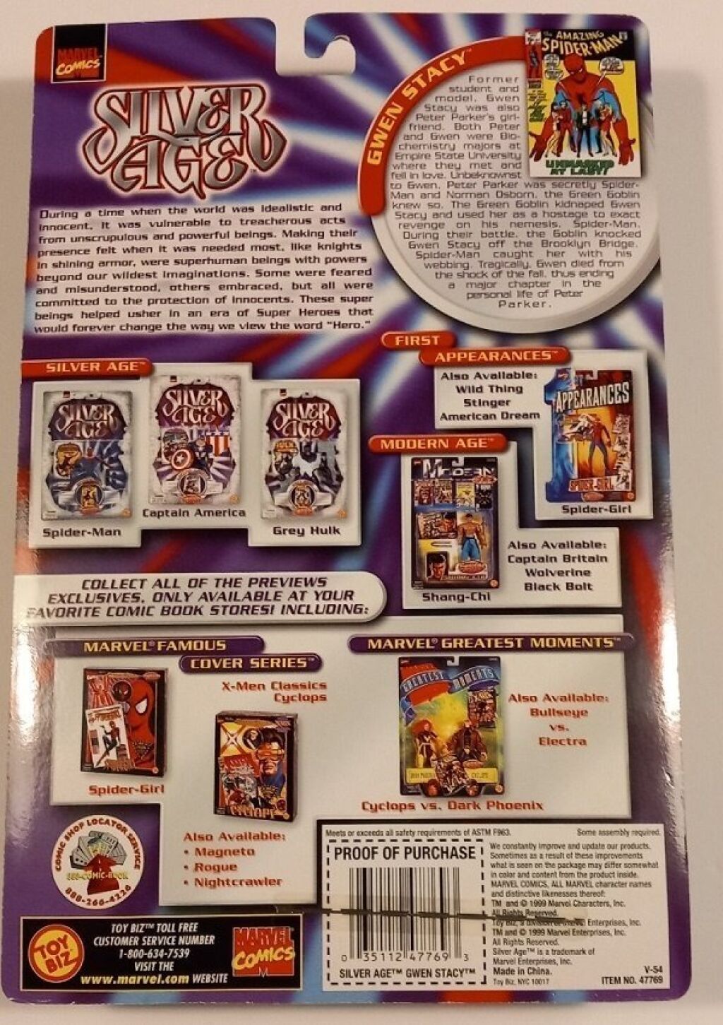Spider-Man Silver Age vintage actiefiguur Gwen Stacy. Deze Previews Exclusive action figure van 13 cm is gemaakt door Toy Biz in 1999. Nieuw in verpakking. Verzendmethode binnen Nederland is pakketpost.