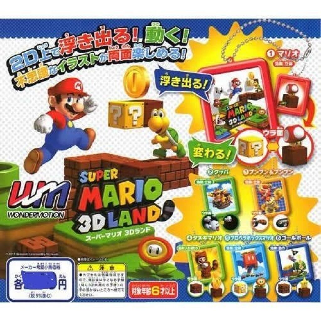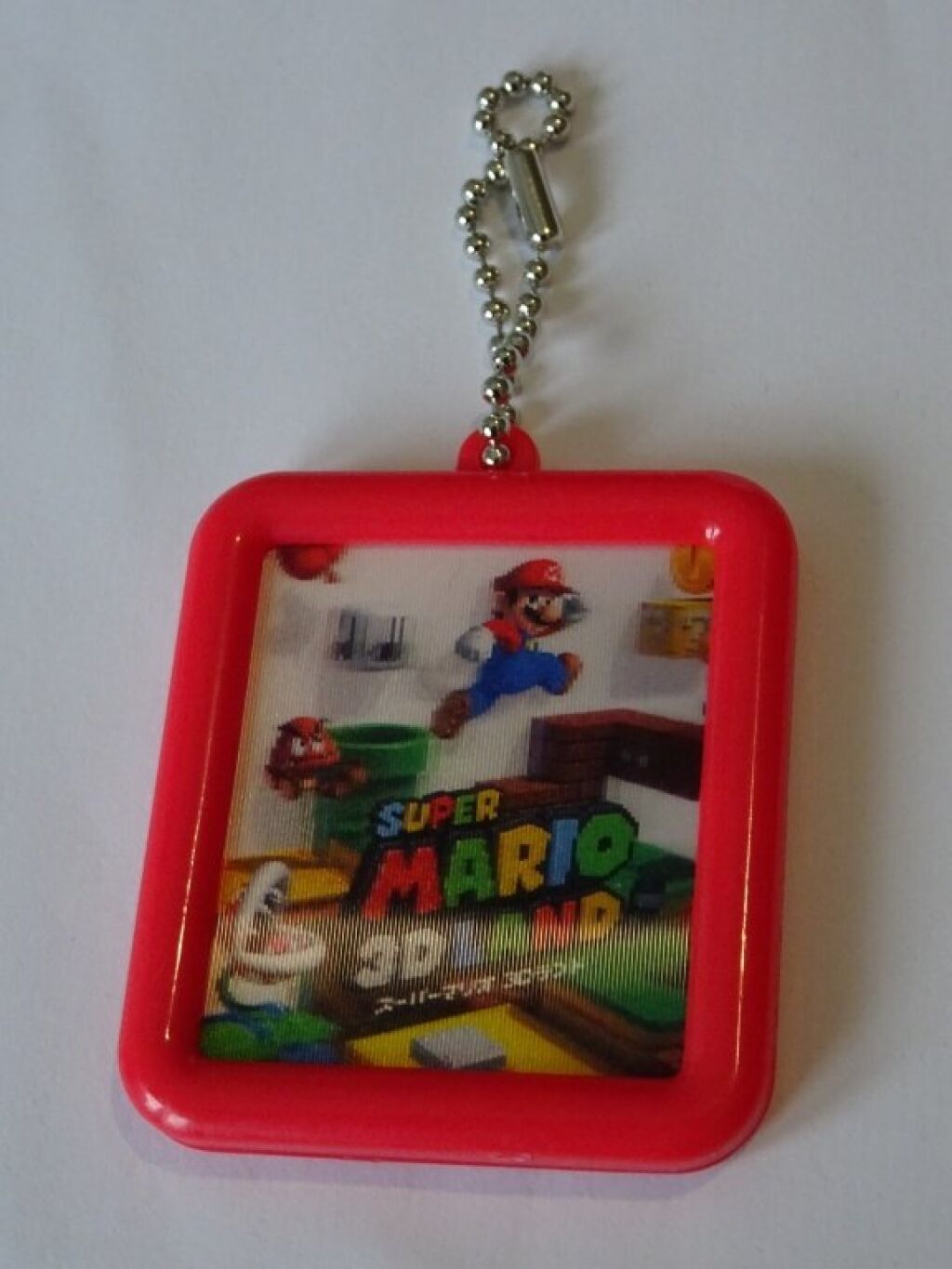 Super Mario 3D land sleutelhanger met lenticulair effect. Deze hanger met de rode rand heeft op beide zijden een afbeelding (o.a. Mario). Er zijn meerdere versies uit deze serie verkrijgbaar. Deze gashapon serie is gemaakt door Wondermotion; import uit Japan. Met officiele license. Verzendmethode binnen Nederland is brievenbuspost.