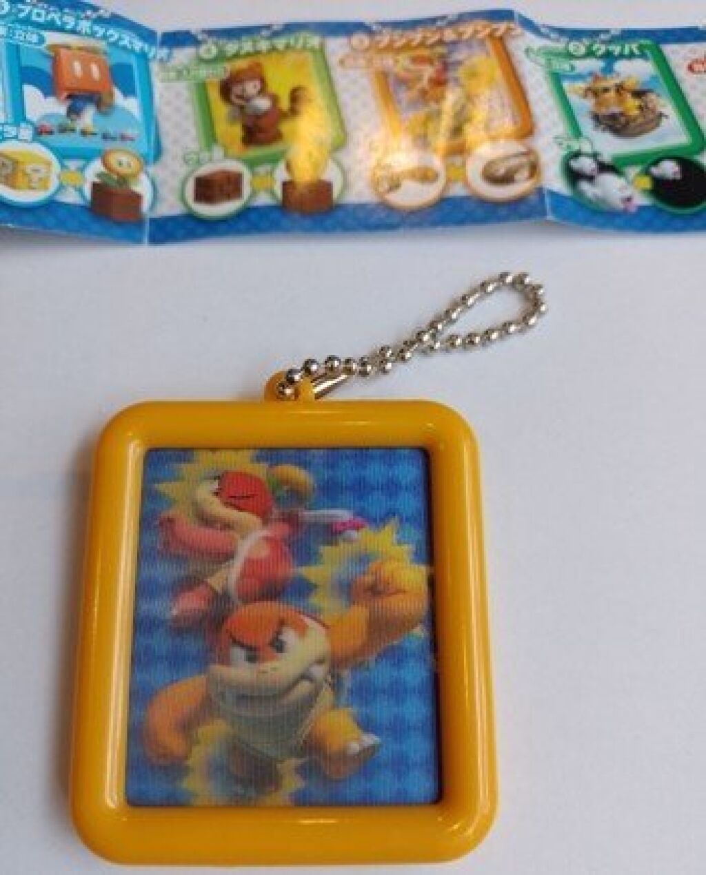 Super Mario 3D land sleutelhanger met lenticulair effect. Deze hanger met de gele rand heeft op beide zijden een afbeelding. Er zijn meerdere versies uit deze serie verkrijgbaar. Deze gashapon serie is gemaakt door Wondermotion; import uit Japan. Met officiele license. Verzendmethode binnen Nederland is brievenbuspost.