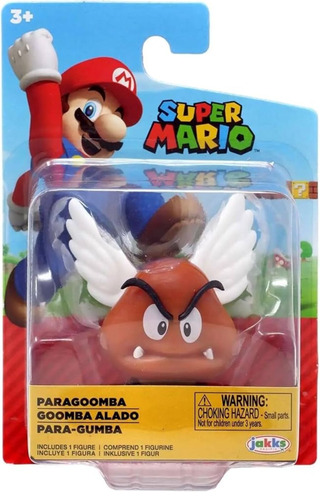 Super Mario actiefiguur Paragoomba van ongeveer 6 cm groot (2,5 inch). Gemaakt door Jakks met officiele license. Nieuw in verpakking. Verzendmethode binnen Nederland is pakketpost.