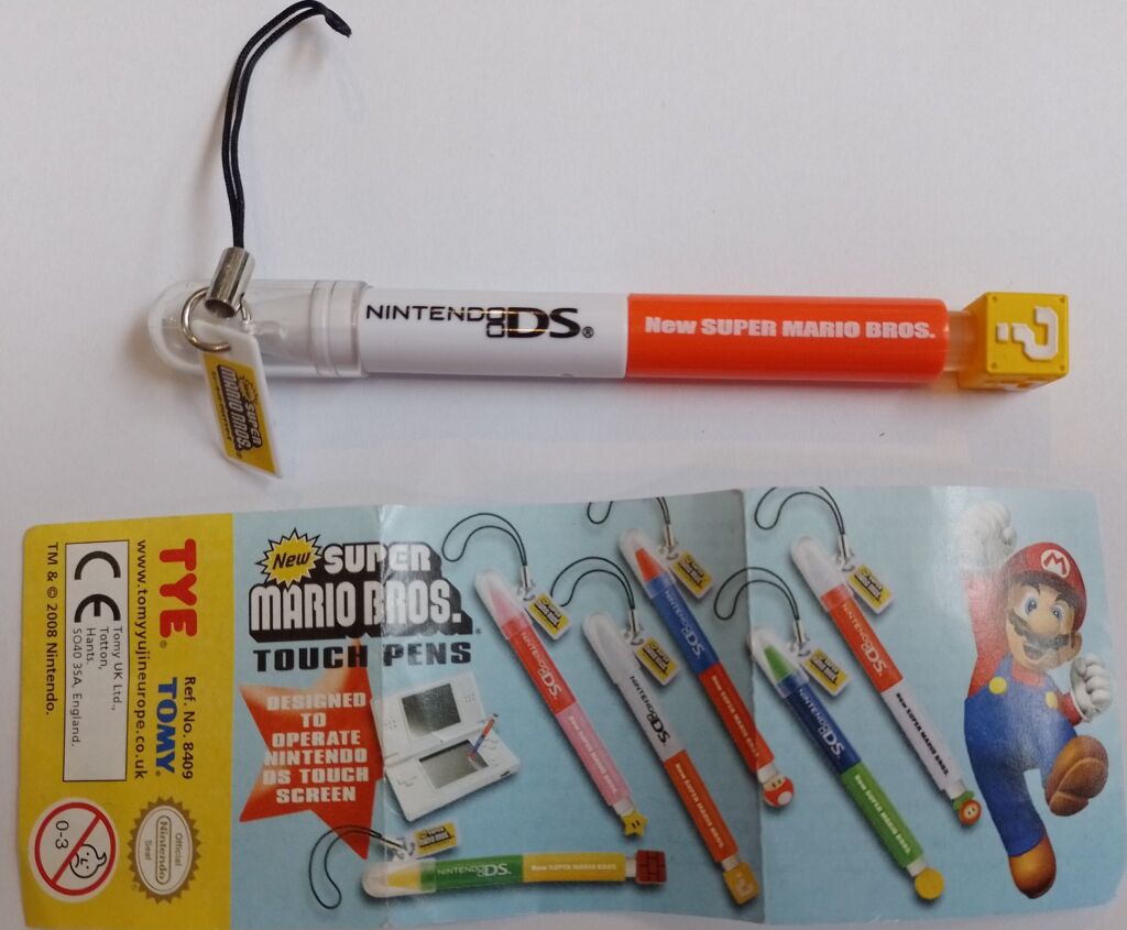 New Super Mario Bros Nintendo DS stylus / touch pen in het wit rood met op de top een vraagtekenblokje/question mark. Gemaakt door Tomy. Met officiele license. Verzendmethode binnen Nederland is brievenbuspost.