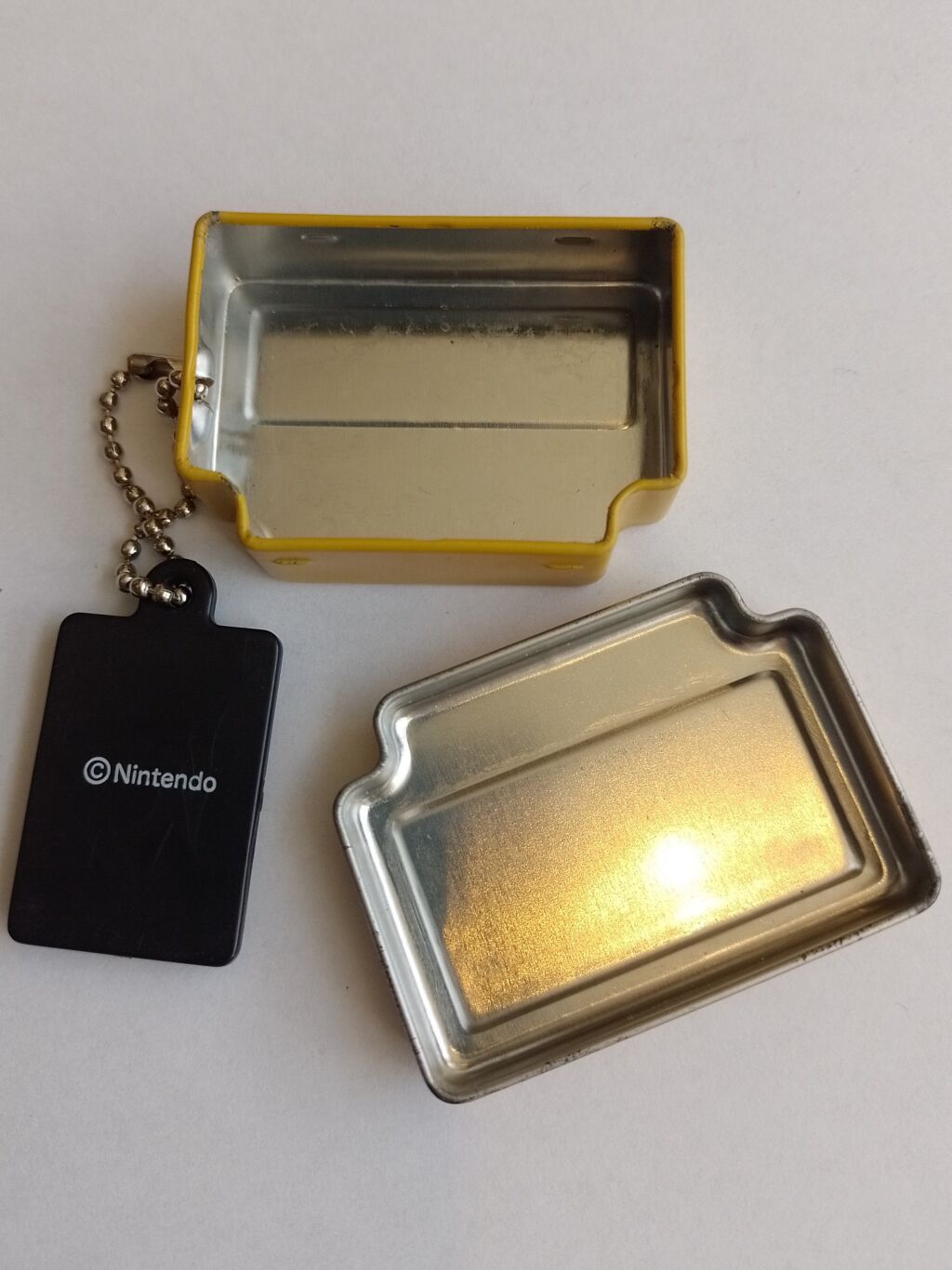 Super Mario Famicon tin keychain / sleutelhanger geel versie B van ongeveer 4,5 cm groot. Naast het blikje (in cartridge vorm van het spel Super Mariobros) is nog een klein zwart hangertje met een mario figuurtje erop. Deze gashapon serie is gemaakt door Bandai. Verzendmethode binnen Nederland is pakketpost.