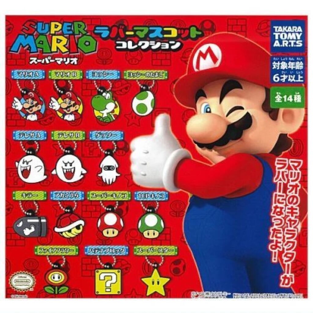 Super Mario rubber mascot keychain met het hoofd van Mario (versie A). De hanger is ongeveer 2 a 2,5 cm groot. Er zijn meer karakters of items uit deze gashapon serie verkrijgbaar. Met officiele license van Nintendo, import uit Japan. Nieuw in verpakking; gemaakt door Takara Tomy. Verzendmethode is brievenbuspost.