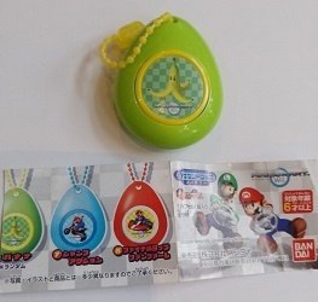 Super Mario sound drop keychain groen met een afbeelding van een banaan. Deze sound drop keychain serie is van Super Mario kart Wii. Wanneer je de button indrukt klinkt er een geluidje. De hanger is ongeveer 5 cm groot. Deze gashapon serie is gemaakt door Bandai. Met officiele license van Nintendo, import uit Japan. Verzendmethode is brievenbuspost.