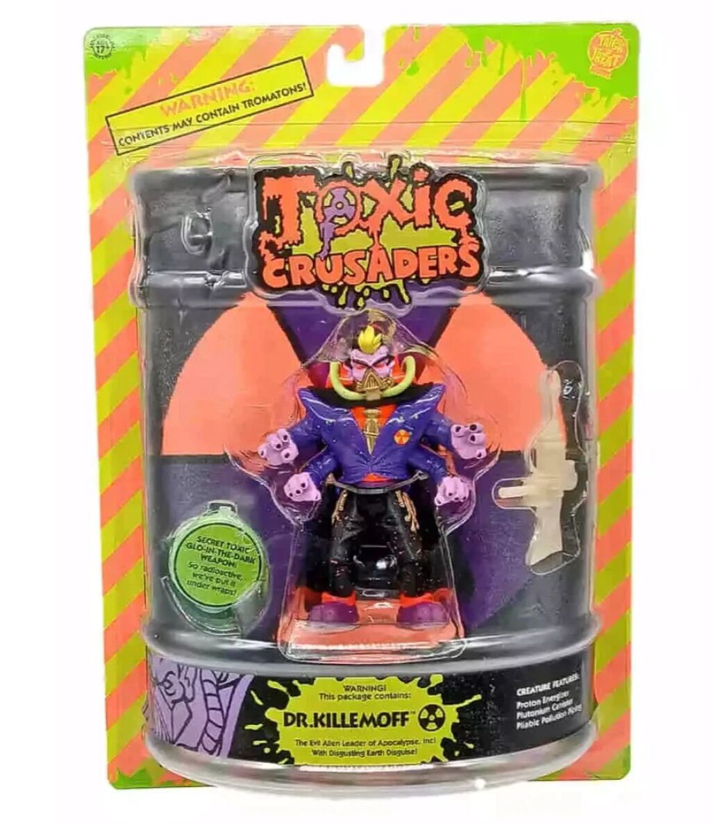 Toxic Crusaders actiefiguur Dr. Killemoff. Dit is een action figure van 13 cm. Gemaakt door Trick or Treat Studios. Nieuw in verpakking. Verzendmethode binnen Nederland is pakketpost.